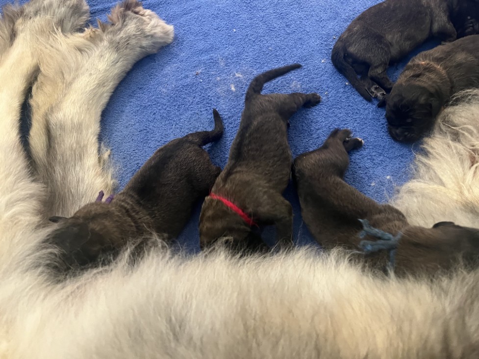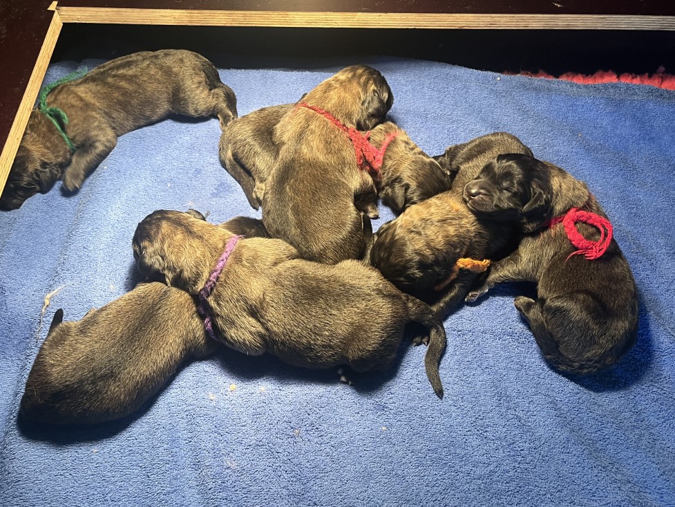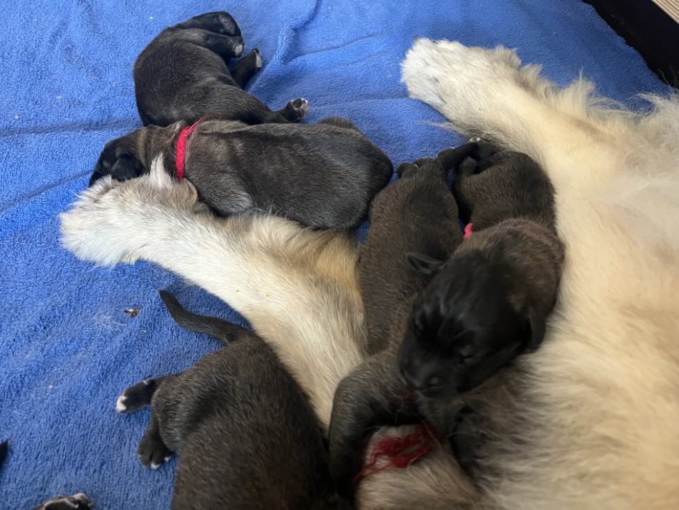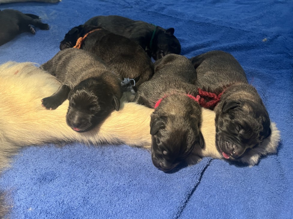 vandaag zijn de pupjes van Bloom en Anton geboren, 3 reutjes en 4 teefjes